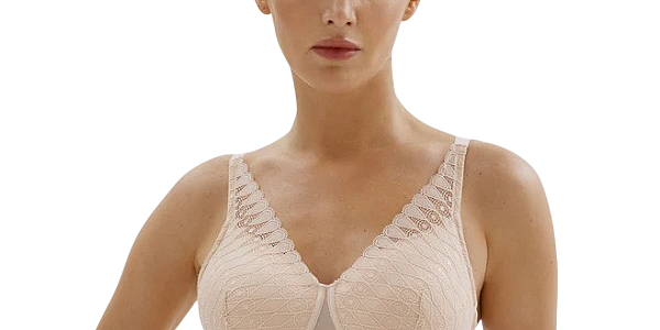 Бюстгальтер после мастэктомии в стиле абстрактного минимализма. Модель с плотными чашками без косточек. Формованные чашки из вспененного материала надежно фиксируют протез с помощью кармашков из эластичного шелковистого микроволокна.